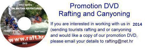 La durata della rafting avventura: circa 3-4 ore. L'ora di partenza:ogni giorno alle 08:30 ed alle 13:30 da Omis, nel periodo dal 01. IV.2025. al 01.X.2025. Prezzo: 40 Euros per persona. Le nostre capacita': abbiamo in possesso 10 canotti per 8 turisti, e cosi' la nostra massima capacita' e' un gruppo di 80 turisti che possono avviarsi nella rafting avventura nel termine mattutino ed altrettanto in quello pomeridiano. L'equipaggiamento che assicuriamo : panciotto da nuoto, casco protettivo, remi, e in caso del tempo brutto e piovoso gli abiti di neopren di tutte le misure (XS,S,M,L,XL,XXL). Guide Rafting hanno licenze rafting ( Licenze rafting IRF - licenze Federazione Internazionale Rafting ) Cosa dovete portare con voi: scarpe da ginnastica, vestiti secchi che vi mettete dopo la rafting gita, asciugamano e crema abbronzante. Rafting foto: un fotografo professionale con la macchina fotografica impermeabile all'acqua scatta delle foto dei partecipanti di rafting avventura durante tutta la gita nei posti piu' interessanti dall'inizio al fine, e se volete dopo la rafting avventura potete comprare un CD con le vostre fotografie. Di solito sul CD ci si trovano circa 150 fotografie. Il prezzo del CD e' 20 euros . Nota: Alla rafting avventura possono partecipare tutte le persone dai 7 ai 77 anni.Per la rafting gita non e' necessaria nessuna conoscenza preliminare e neanche una particolare forma fisica. Per la rafting avventura e' necessario prenotare almeno 1-5 giorni prima della sua esecuzione. Informazioni e prenotazioni: +385(0)21 863161 +385(0)91 5906386 rafting@net.hr Incite tutte le agenzie turistiche interessate ora per metterselo in contatto con per organizzare i collaborations per la stagione di questa estate. Stagione 1.April.2025 - 1.October.2025 dell'estate.